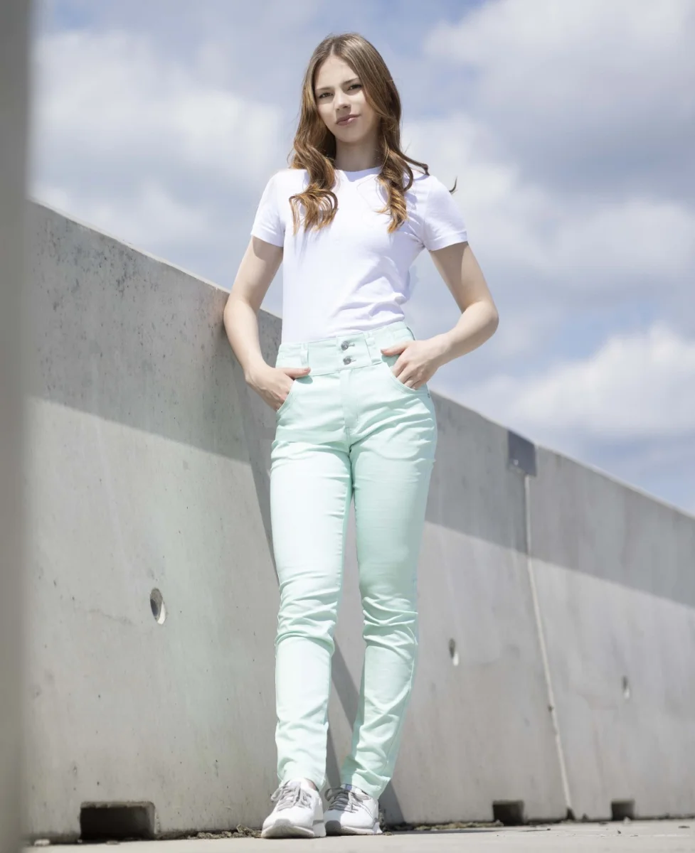 • exkluzivní dámské elastické kalhoty se zvýšeným pasem vyvinuté speciálně pro ženy