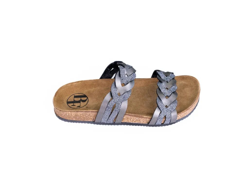 Dámské pantofle s pletencem stříbrné