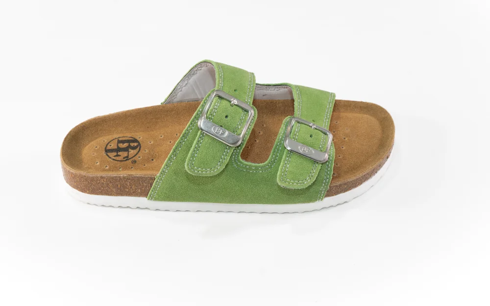 Celokožená pantofle s prodyšnou stélkou s klenbou.