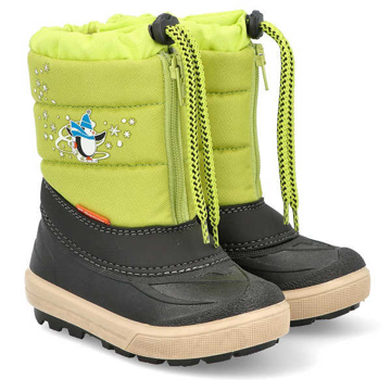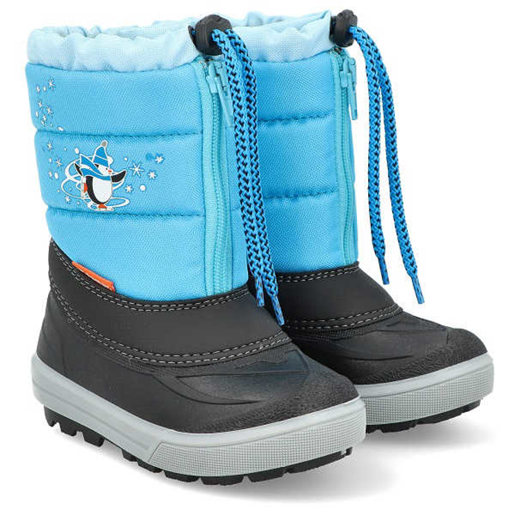 Dětská zimní obuv Demar KENNY zateplená pravou ovčí vlnou je vhodná do sněhu a mrazu. Barva sněhulí je světlemodrá. Zimní obuv je velice teplá a lehká. Nepromokavá spodní část je vyrobena z termokaučuku a vrchní díl z odolné textilie. Pro pohodlné a snadné obouvání obuvi je na přední straně umístěn zip. Možnost zatažení svršku proti padání sněhu na tkaničku. Mají hrubší protiskluzovou podrážku zajišťující bezpečnost chůze. Vyrobeno v EU.