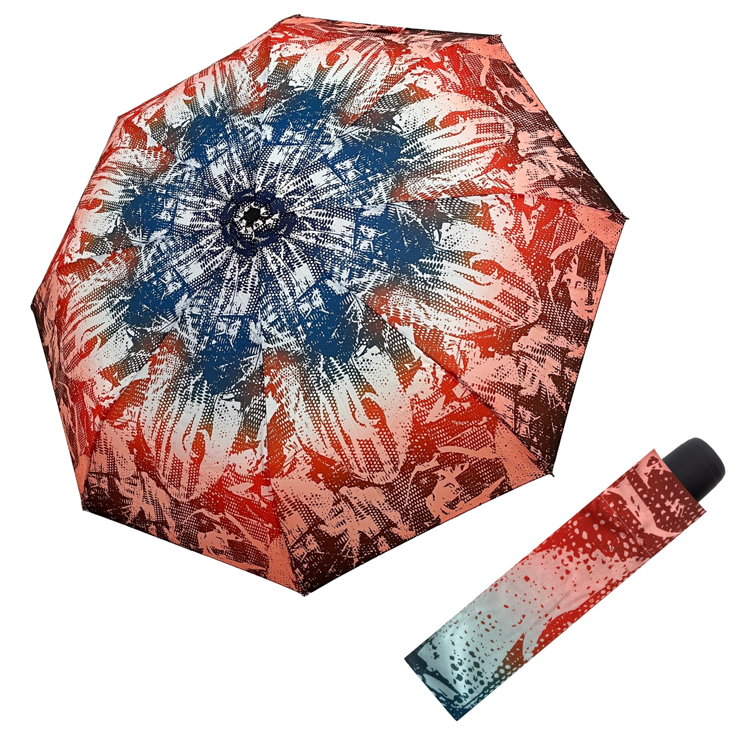 Hit Mini Light Paradise - dámský skládací deštník Hit mini je odolný a lehký skládací deštník v nadčasovém provedení, který je dodáván s obalem stejného motivu. Díky kompaktní velikosti jej snadno vložíte do kabelky i tašky. Deštník má stabilní černou konstrukci kombinující pevnost oceli a pružnost sklolaminátu, která mu dodává odolnost a zároveň pružnost ve větru. Potah je odolný vůči změnám vlhkosti a teplot, nesráží se. Informace o produktu: odolný vůči větru, při převrácení nedojde k poškození deštníku 100procent polyesterový potah konstrukce černá ocel a sklolaminát