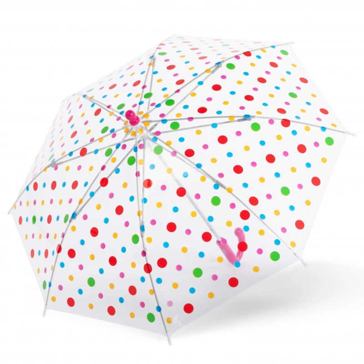 Dětský holový deštník s průhlednou střechou s veselými obrázky, které dětem rozzáří i deštivé dny. Velice kvalitní konstrukce ze sklolaminátu, barevná plastová ručka.
