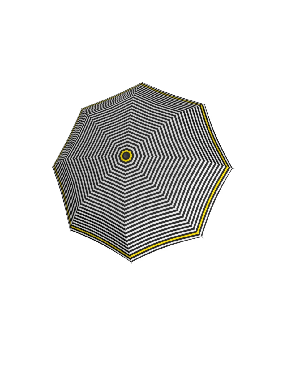 Mini Triple - dámský skládací deštník Mini Triple je dámský mechanický deštník v pruhovém vzoru v černo - bílé barvě a žlutými detaily. Tento model se hodí do každé kabelky, protože se svou délkou 24 cm nezabírá moc místa, je lehký a skladný. Informace o produktu: Délka složeného deštníku je 24 cm. Deštník má černou ocelovou konstrukci a mechanické otevírání. Plastová ručka s nápisem derby Polyesterový potah odolný proti změnám vlhkosti a teplot. Nesráží se.