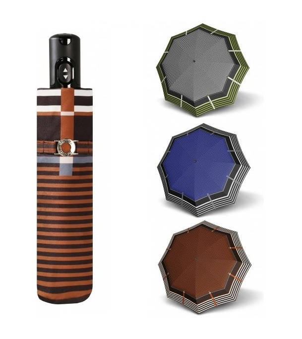 Doppler Magic Carbonsteel. Luxusní skládací deštník . Při výrobě oceli vznikla extrémně flexibilní a vysoce odolná ocel „CARBON-STEELITE“. To umožnilo vyrobit konstrukci deštníku , která je obzvláště lehká a přesto velmi stabilní. Testováno ve "větrném tunelu" do 100 km/h.
