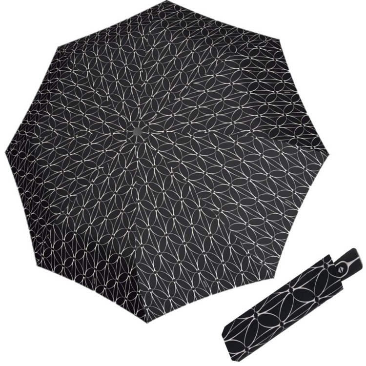 Fiber Magic Black a White Rings - dámský plně automatický deštník Deštník s moderním vzorem, který je dodáván s obalem stejného motivu. Konstrukce deštníku je vyrobena v kombinaci materiálů ocel / sklolaminát a hliník zaručuje pevnost a stabilitu. Odolný proti korozi. Při otočení deštníku nedojde k jeho poškození. 100procent polyesterový potah je odolný proti změnám vlhkosti, teplot a nesráží se. Větruodolný testovaný deštník, který obstál v testu v aerodynamickém tunelu s rychlostí větru až 100 km/h. Upozornění: Plně automatický deštník otevírejte a zavírejte pouze stisknutím tlačítka, jinak hrozí rozbití mechanismu. Informace o produktu: Odolný vůči větru, při převrácení nedojde k poškození deštníku Testováno ve větrném tunelu BMW do 100 km/hod