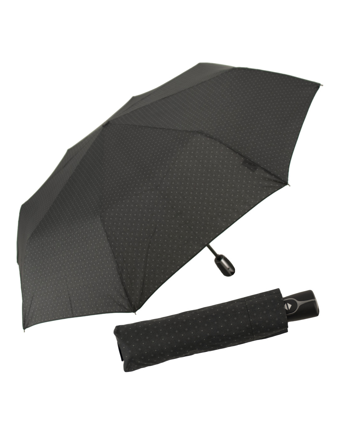 Pánský plně automatický deštník. Kostra deštníku je vyrobena v kombinaci materiálů sklolaminát, ocel a hliník zaručuje pevnost a stabilitu. Při otočení deštníku nedojde k jeho poškození. Odolný proti korozi. Polyesterový potah je odolný proti změnám vlhkosti a teplot, nesráží se.