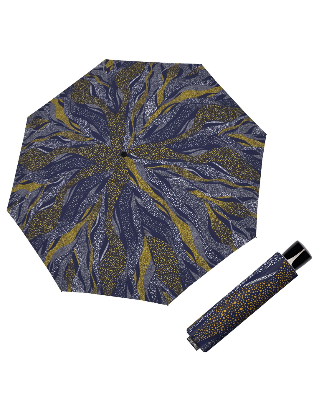 Deštník ze sklolaminátu, oceli a hliníku, který odolá větru – při převrácení se snadno vrátí zpět. Má velkou střechu, elegantní barevně sladěnou rukojeť s logem Doppler a díky kompaktní velikosti se vejde i do kabelky. Polyesterový potah je tvarově stálý a odolný vůči vlhkosti i teplotám. Spolehlivá volba s minimem reklamací.