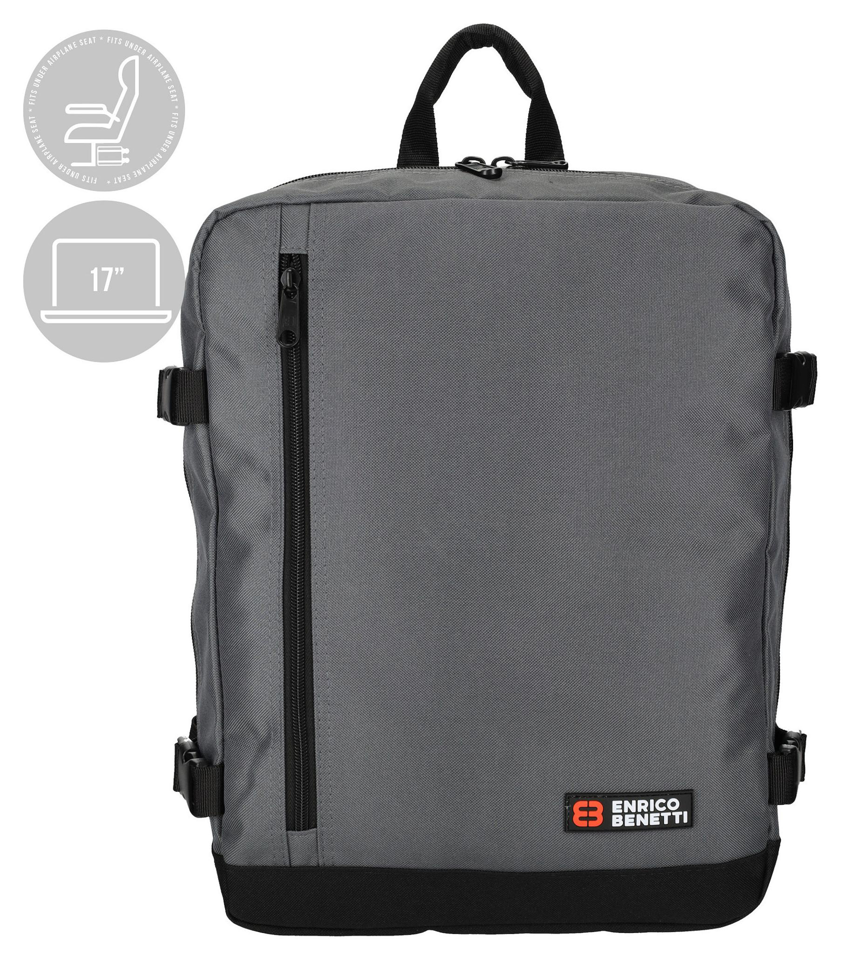 Enrico Benetti Amsterdam batoh pod sedadlo pro 17" notebook. Nabízí objem 24 litrů a rozměry 30x20x40 cm, ideální na cesty.