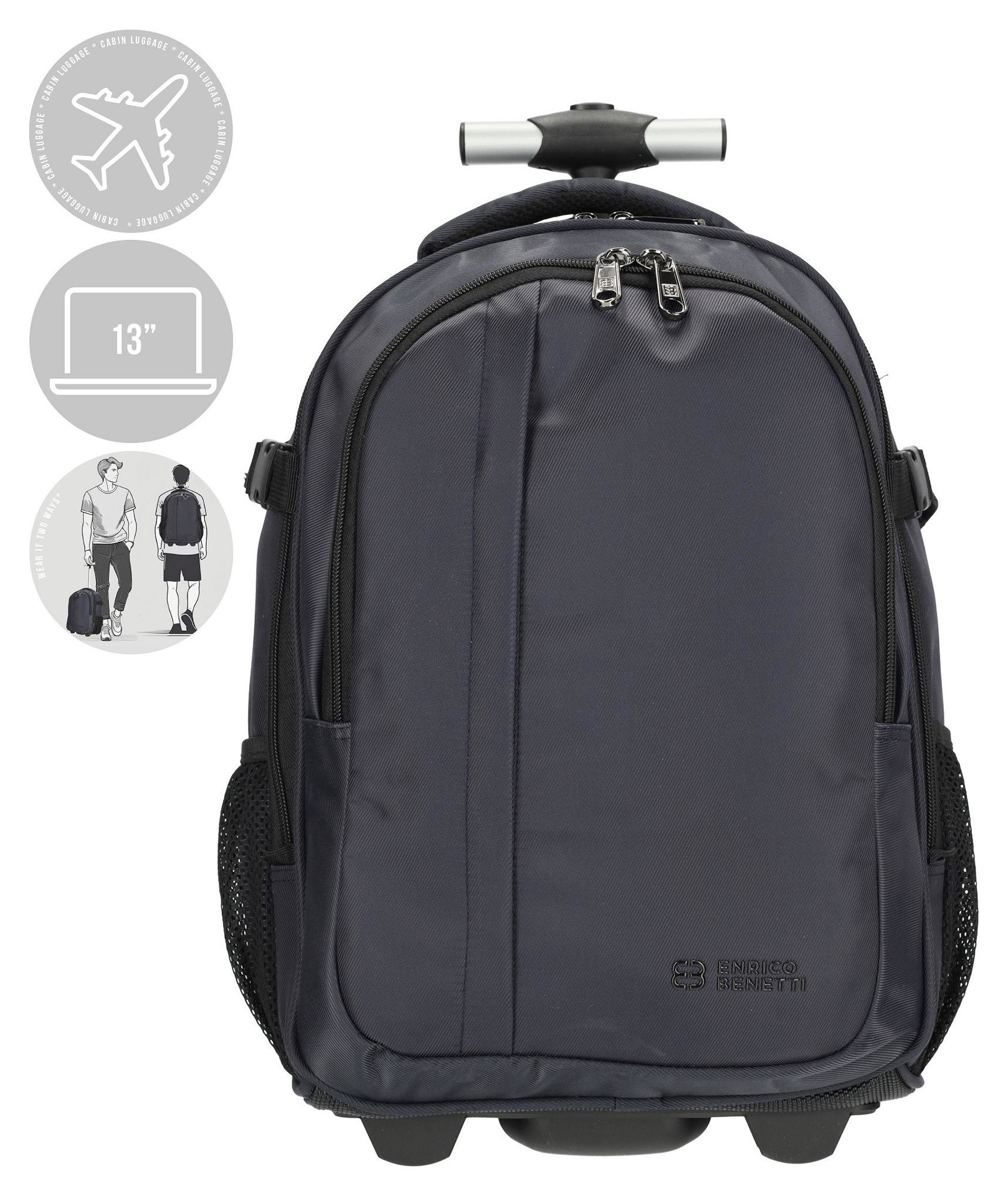 Enrico Benetti Innsbruck je praktický batoh na kolečkách pro notebook 13 palců, ideální jako kabinové zavazadlo. Nabízí objem 29 litrů a rozměry 30x20x48 cm.