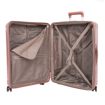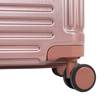 Skořepinový kufr na čtyřech kolečkách s metalickým povrchem, integrovaným expandérem a TSA zámkem.čtyři dvoukolečka otočná o 360°lehká výsuvná rukojeť z hliníku s aretací na madlevnořený TSA zámek pro bezproblémové cestování mezi kontinentyexpandér pro navýšení objemu o 20 %ochranné kovové krytky na rozíchtextilní dělicí příčka se dvěma síťovanými kapsami na zipkompresní popruhy pro fixaci nákladuvnitřní kapsa na zippevné madlo s gelovou výstelkou na horní a boční stranětextilní podšívkapovrch připomínající broušený kovprodloužená pětiletá záruka