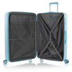 Čtyřkolečkový skořepinový kufr z polykarbonátu vybavený TSA zámkem a expandérem.