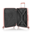 Čtyřkolečkový skořepinový kufr z polykarbonátu vybavený TSA zámkem a expandérem.