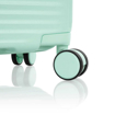 Čtyřkolečkový skořepinový kufr z polykarbonátu vybavený TSA zámkem a expandérem.