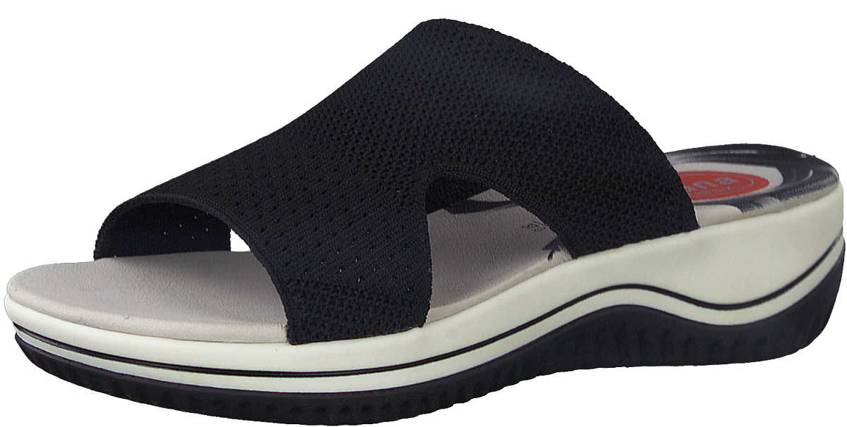 Pohodlné pantofle z textilu od Jana. Slipový model má výšku podpatku 40mm a gumovou podrážku.Pohodlné letní pantofle pro mnoho různých příležitostí.