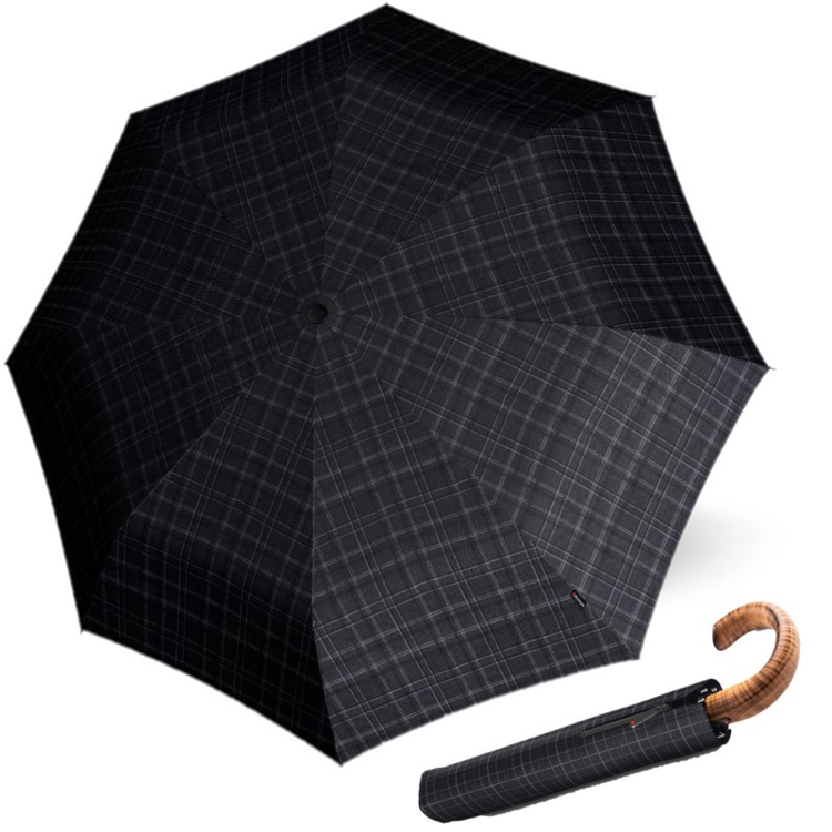 KNIRPS KNIRPS S.570 LARGE PRINTS CHECK - pánský vystřelovací deštník černá