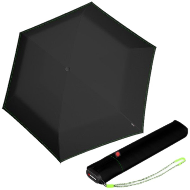 KNIRPS KNIRPS US.050 NEON BLACK - lehký dámský skládací plochý deštník černá