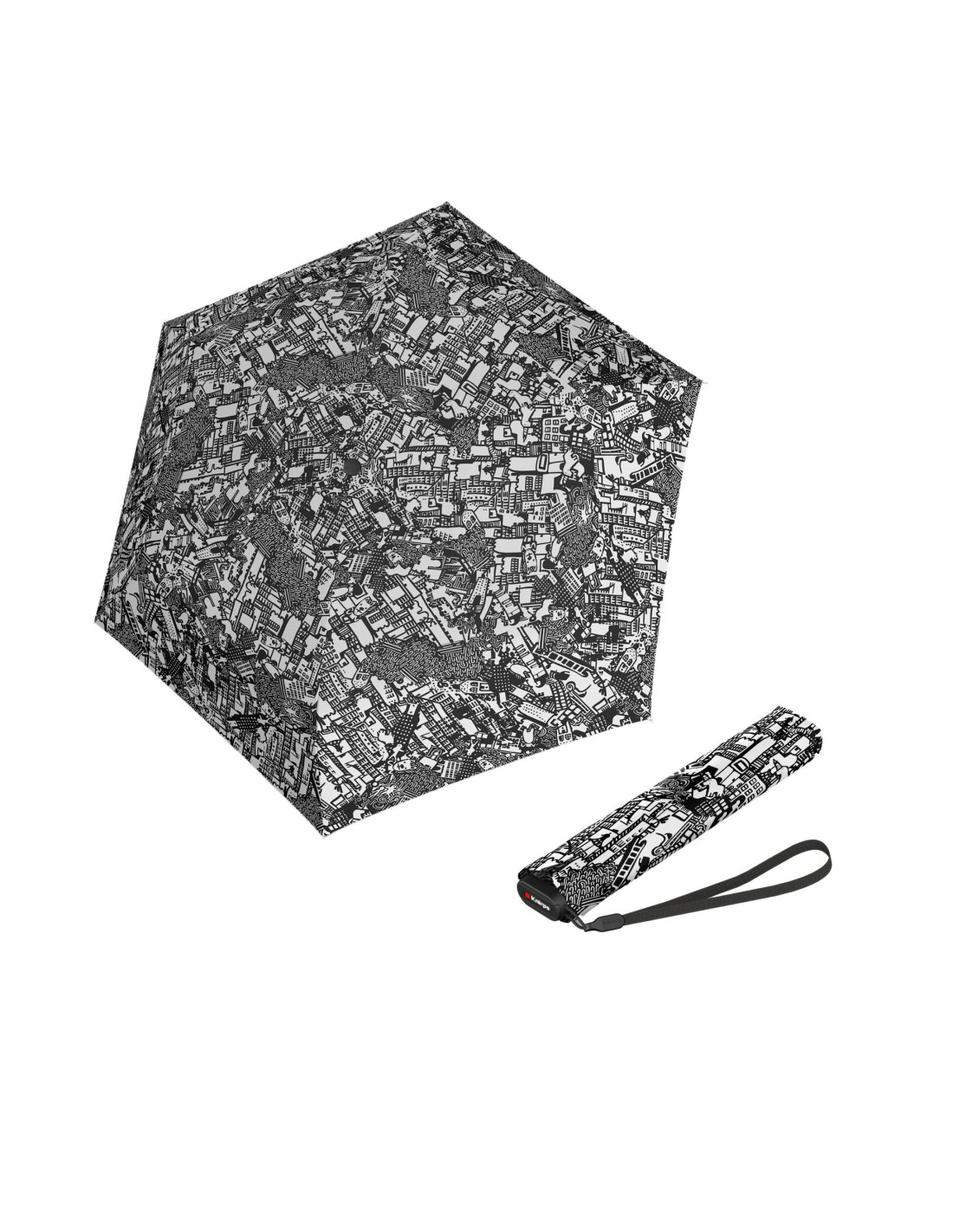 Manuální skládací deštník KNIRPS US.050 využívá kromě vysoce kvalitních materiálů (hliník a sklolaminát) také obzvláště tenkou polyesterovou tkaninu, která umožňuje snadné složení deštníku a snížení hmotnosti na 115 g.