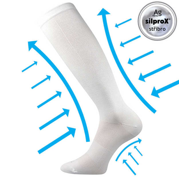 Vyberte si z naší nabídky kompresní ponožky a podkolenky v pánském i dámském provedení. Tyto speciální ponožky díky svým vlastnostem pozitivně působí na krevní oběh, protože na nohy, které jsou velmi namáhavé, působí postupným masážním tlakem. Kompresní ponožky a podkolenky jsou skvělou prevencí unavených lýtek, křečových žil a svalových křečí. Ocení je zvláště lidé, jejichž nohy jsou dlouhodobě namáhány. A to nejen sportovci a těhotné ženy, ale také lidé, kteří ve svém zaměstnání dlouhodobě sedí, stojí, či chodí.