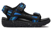 Dětské sandály Lee Cooper jsou praktickým modelem pro každodenní nošení. Lehká konstrukce z odolného materiálu má tvarovanou pěnovou vložku, která tlumí nárazy při pohybu na nerovném povrchu. Systém tří nastavitelných pásků na suchý zip zaručuje dokonalé přizpůsobení šířce a tvaru nohy. Další stabilitu zajišťuje pásek, který drží nohu na vnější straně. Sandály mají protiskluzovou gumovou podrážku zakončenou přilnavým běhounem, takže se můžete bezpečně pohybovat i na mokrém povrchu. Sandály poskytnou neocenitelný komfort a ventilaci pro vaše nohy při turistice nebo hraní na domácí zahradě za slunečných letních dnů.