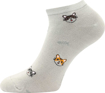 Dámské bambusové ponožky Lonka® BIBIANA jsou dámské nízké ponožky pro každodenní použití. Roztomilé motivy pejsků nebo kočiček se Vám budou líbit. Bambusová viskóza je přírodní materiál s přirozenými antibakteriálními a antialergickými vlastnostmi, jemné a hebké vlákno je příjemné na omak i k pokožce, dobře pohlcuje vlhkost. Kvalitní ponožky mají díky 200 jehlovému úpletu jemný a hladký povrch. Špice je uzavřena řetízkováním, takže nikde netlačí. Výhodné balení 3 párů ponožek obsahuje mix barev.