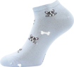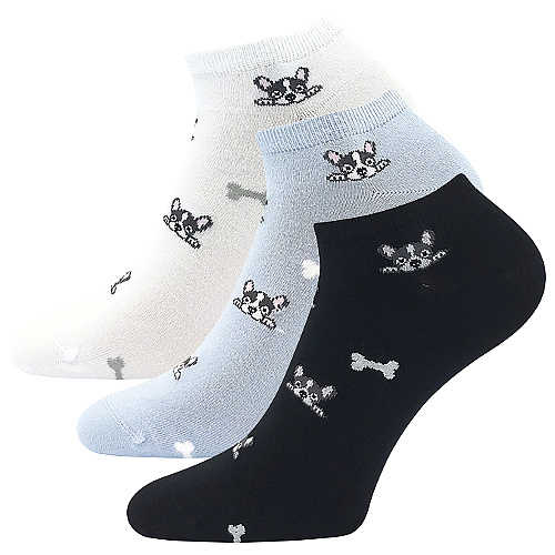Dámské bambusové ponožky Lonka® BIBIANA jsou dámské nízké ponožky pro každodenní použití. Roztomilé motivy pejsků nebo kočiček se Vám budou líbit. Bambusová viskóza je přírodní materiál s přirozenými antibakteriálními a antialergickými vlastnostmi, jemné a hebké vlákno je příjemné na omak i k pokožce, dobře pohlcuje vlhkost. Kvalitní ponožky mají díky 200 jehlovému úpletu jemný a hladký povrch. Špice je uzavřena řetízkováním, takže nikde netlačí. Výhodné balení 3 párů ponožek obsahuje mix barev.