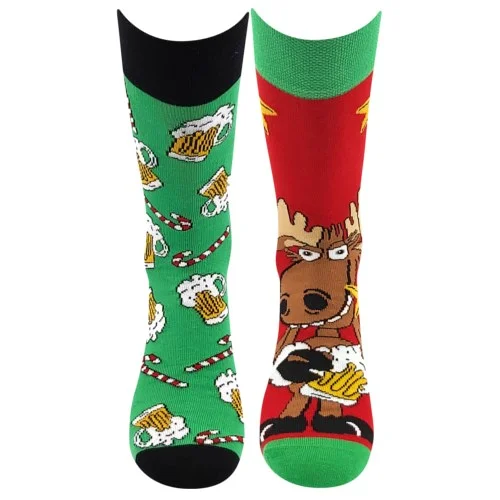 LONKA Ponožky slabé vánoční DAMER obrázkové se SOBEM a PIVEM (3 páry)