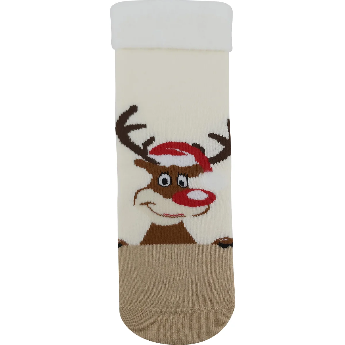 LONKA Ponožky dámské celofroté MEDEA s vánočním obrázkem SOBA krémové (3 páry)