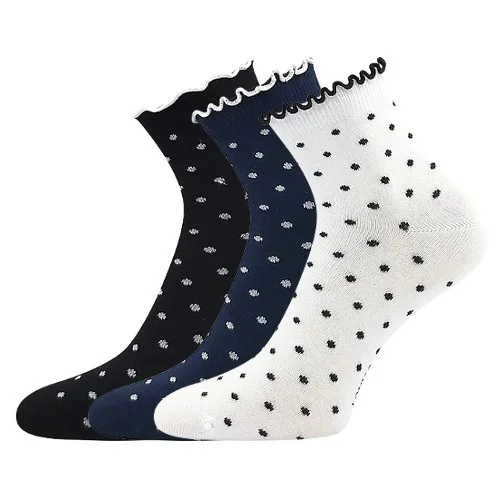 LONKA Ponožky dámské SOPHIA s ozdobným lemem MIX s puntíky (3 páry)