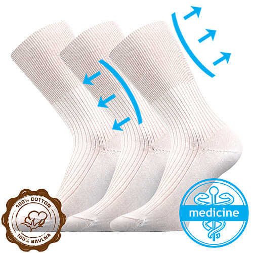 LONKA Ponožky slabé medicine ZDRAVAN 100% bavlněné s nestahujícím lemem BÍLÉ (3 páry)