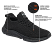 Ultralehká, prodyšná, velmi pohodlná polobotka-teniska s širší podešví, jež zajišťuje velmi dobrou stabilitu při chůzi a má protiskluzovou SRA vlastnost, čímž uživateli zajistí větší bezpečí.   Kvalitní lehká podešev s inovativní technologií eCorn má o 60% vyšší tlumící efekt při pohybu i při dlouhodobém stání než jiné běžně používané technologie. Tlumí rázy na patní kost a zároveň šetří svalstvo chodidel i nohou. Nohy i chodidla na konci pracovního dne tedy tolik nebolí. Na podešvi je navíc umístěn z vnější strany dodatečný TPU komponent, jež zamezuje nadměrnému vykřivení (supinaci) chodidla, pomáhá tak lépe udržet chodidlo ve správné poloze, přispívá k lepší rovnováze a optimalizuje odraz nohy od povrchu. Velkou výhodou této obuvi, jež zpříjemňuje uživateli nošení, je velmi dobrá prodyšnost svršku vyrobeného z textilie MESH 3D knit. Do boty může vstupovat a z ní vystupovat vzduch, kůže na chodidlech tak může lépe dýchat a ta jsou potom déle svěží. Svršek obuvi navíc reaguje na tvar chodidla a přizpůsobí se jeho tvaru, nikde nic netlačí, netáhne. Předností použitého materiálu je také to, že je v případě zašpinění omyvatelný, pratelný na 30 ° C (bez použití chemikálií) a rychle osychá. Příjemný svěží pocit při nošení dále umocňuje i stélka Carbona, jež obsahuje aktivní uhlí, které má antibakteriální účinky a pohlcuje pach. Celkově je tato obuv vhodná tam, kde jsou lidé dlouho „na nohou“ a potřebují mít lehké, prodyšné pohodlné boty na celodenní nošení. Tzn.  ocení je např. doktoři a zdravotní sestry, pracovníci laboratoří, lékárníci, přepravci v logistice, doručovatelé v poštovních službách, obsluha v pohostinství,  průvodčí, atd.
