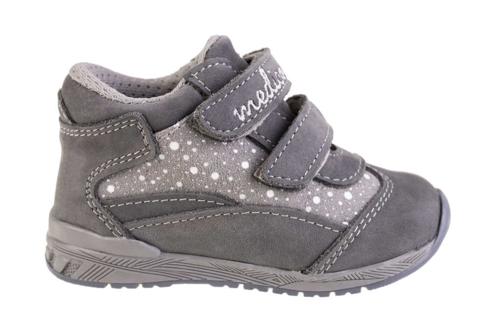 Dětská kožená obuv s flexibilní podešví, anatomická stélka - vyjímatelná, kůže nubuk. Reflexní prvky. Vnitřní podšívka z prodyšného materiálu. Kožená stélka, Obuv má okop.