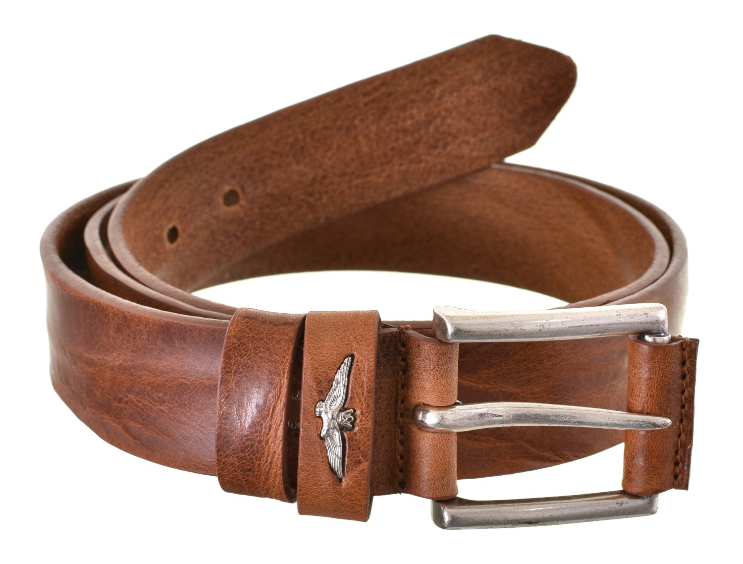 Pánský kožený pásek prestižní značky Aeronautica Militare v koňakové /světle hnědé/ barvě v celkové délce 120 cm. Stylový pásek se zajímavou strukturou a logem AM, lze nosit ke kalhotám i šortkám. Určeno pro moderní, úspěšné muže, kteří sází na kvalitu a mají rádi sportovně-elegantní styl.