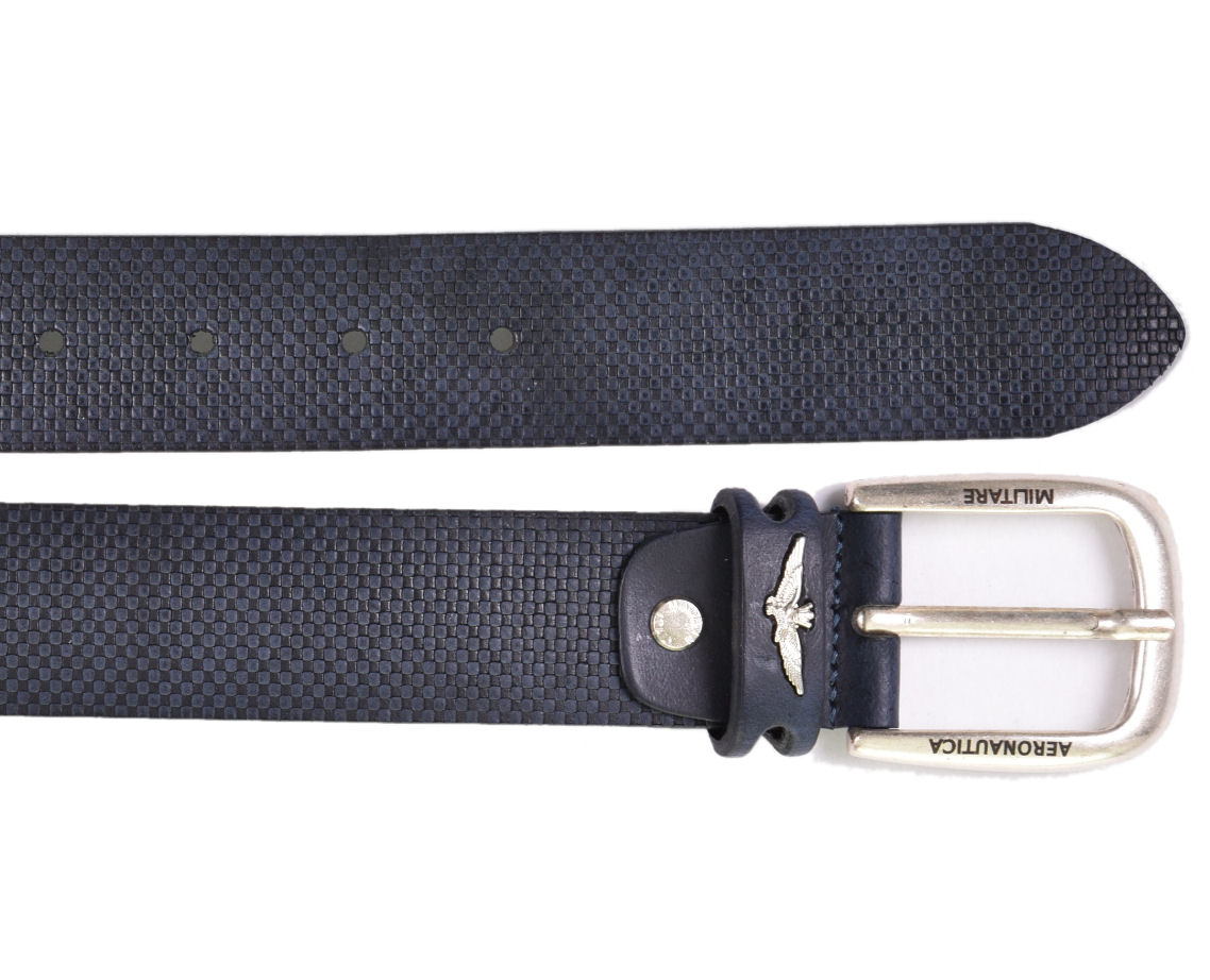 Pánský kožený opasek prestižní značky Aeronautica Militare v modré barvě 125 cm. Stylový pásek se zajímavou strukturou a logem AM, lze nosit ke kalhotám i šortkám. Určeno pro moderní, úspěšné muže, kteří sází na kvalitu a mají rádi sportovně-elegantní styl.