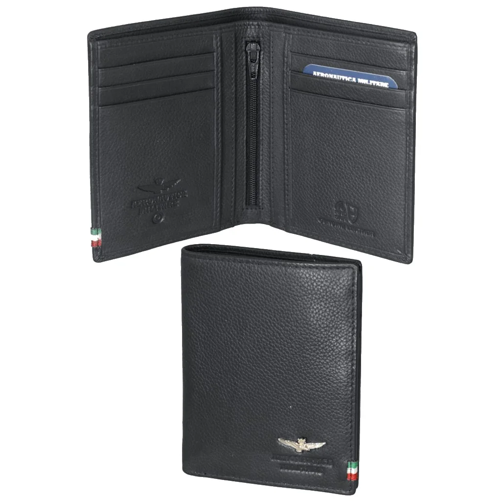 Pánská kožená peněženka italské prestižní značky Aeronautica Militare v oblíbené černé barvě. Stylová peněženka, která se hodí pro sportovně založené muže, kteří si potrpí i na eleganci.