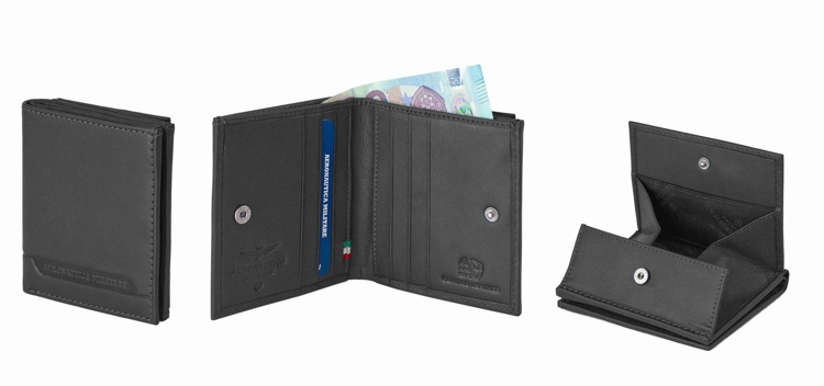 Pánská kožená peněženka italské prestižní značky Aeronautica Militare série Moon v oblíbené černé barvě. Stylová peněženka, která se hodí pro sportovně založené muže, kteří si potrpí i na eleganci a hledá funkční doplněk.