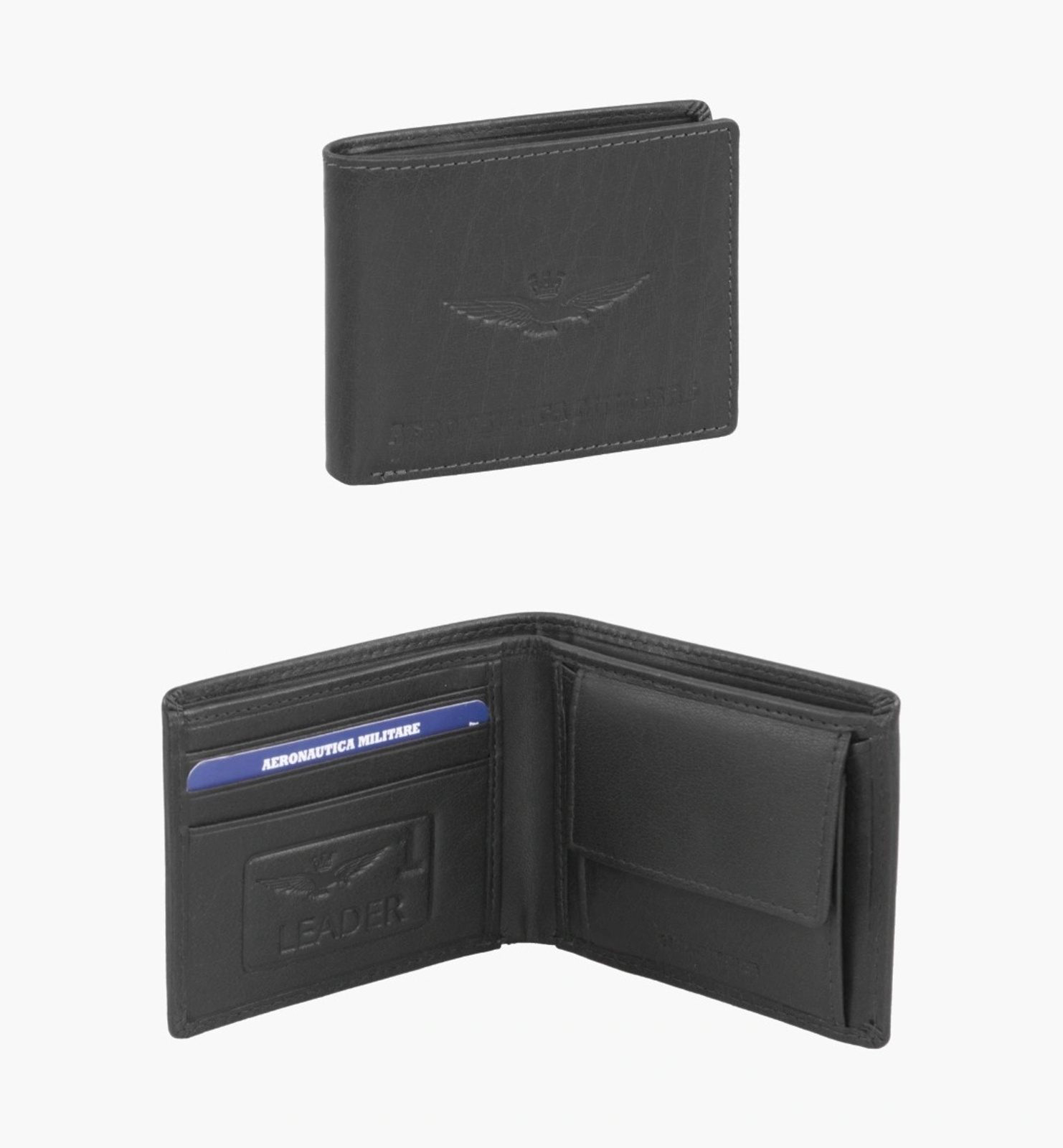 Pánská kožená peněženka italské prestižní značky Aeronautica Militare série New Eagle v oblíbené černé barvě. Vyrobeno z vysoce kvalitní kůže s vintage efektem – tyto peněženky z řady New Eagle od značky Aeronautica Militare jsou ideálním doplňkem pro ty, kteří hledají styl i praktičnost. Na přední straně vyniká reliéfní logo s křídly, které dodává peněžence výrazný a elegantní charakter. Kontrastní švy a ruční zpracování podtrhují důraz na detail.