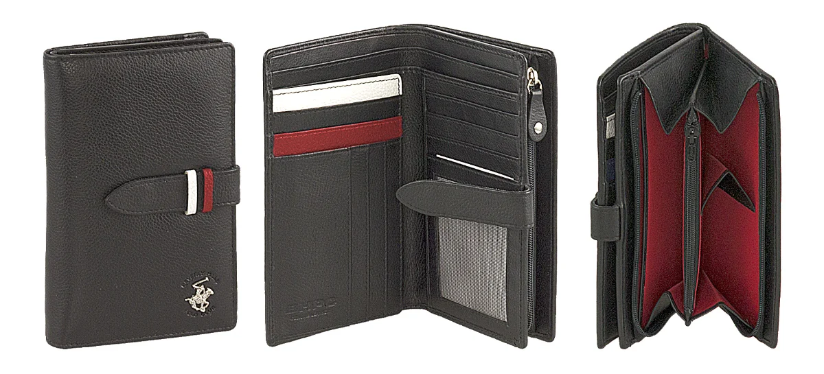 Dámská kožená peněženka značky Beverly Hills Polo Club série Loop v oblíbené černé barvě. Dámská kožená peněženka Beverly Hills Polo Club BH-1353 je ideální volba pro ty, kteří chtějí mít v peněžence pořádek a zároveň reprezentativní doplněk. Černá pravá kůže působí nadčasově, jemné červeno-bílé detaily dodávají charakter a typické logo BHPC potvrzuje kvalitu značky. Uvnitř peněženky najdete velkorysé a přehledné uspořádání – dostatek slotů na platební i věrnostní karty, přihrádky na doklady a praktickou kapsu se síťkou. Velkou výhodou je samostatná zipová kapsa na mince s více přihrádkami, která udrží drobné perfektně organizované. Zapínání na druk zajišťuje bezpečné uzavření i při plném naplnění.
