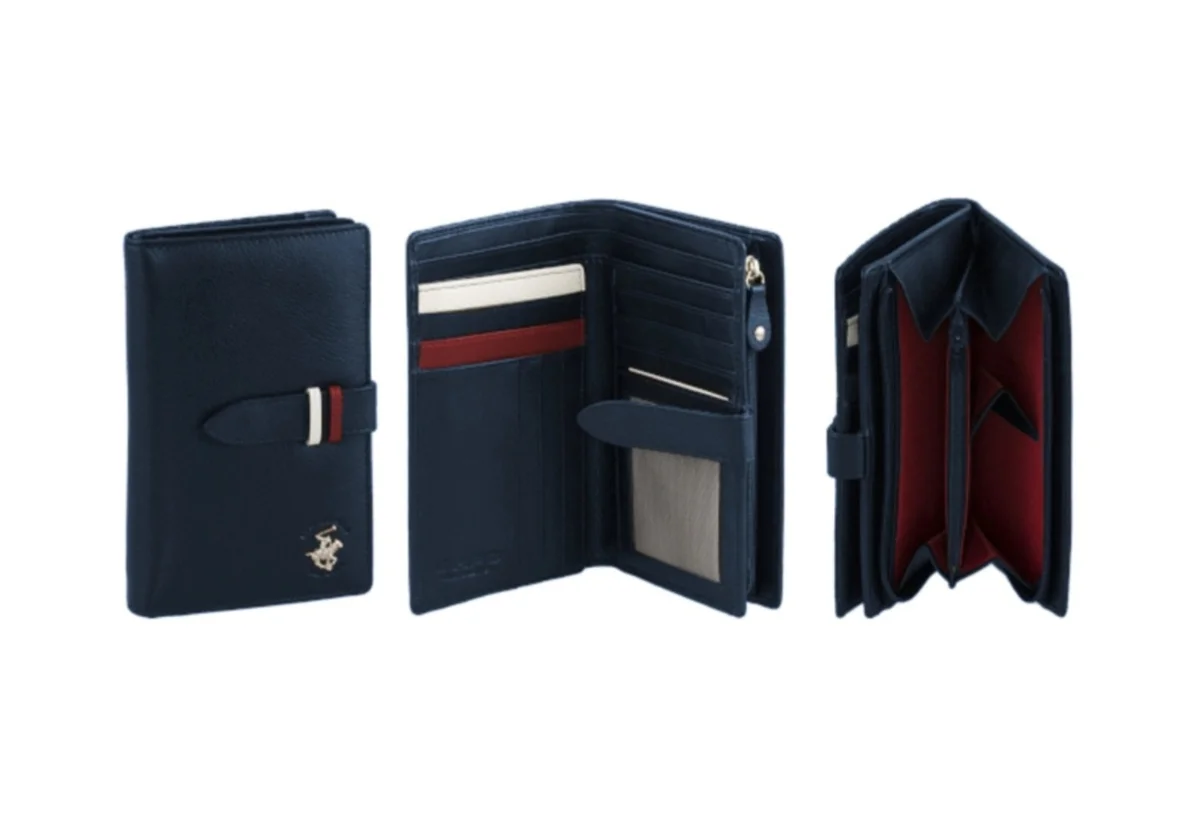 Dámská kožená peněženka značky Beverly Hills Polo Club série Loop v tmavě modré barvě. Dámská kožená peněženka Beverly Hills Polo Club BH-1353 je ideální volba pro ty, kteří chtějí mít v peněžence pořádek a zároveň reprezentativní doplněk. Černá pravá kůže působí nadčasově, jemné červeno-bílé detaily dodávají charakter a typické logo BHPC potvrzuje kvalitu značky. Uvnitř peněženky najdete velkorysé a přehledné uspořádání – dostatek slotů na platební i věrnostní karty, přihrádky na doklady a praktickou kapsu se síťkou. Velkou výhodou je samostatná zipová kapsa na mince s více přihrádkami, která udrží drobné perfektně organizované. Zapínání na druk zajišťuje bezpečné uzavření i při plném naplnění.