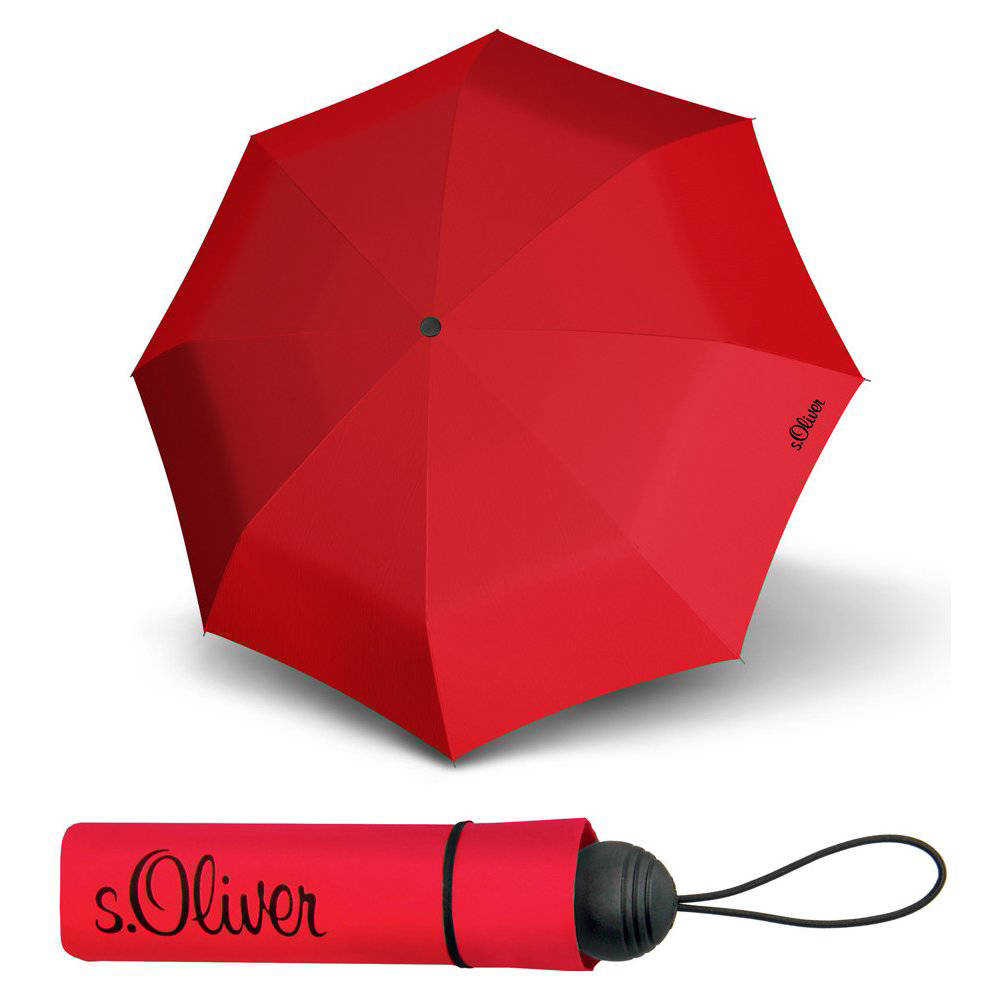 Kvalitní dámský módní jednobarevný skládací deštník s.Oliver. Mechanický deštník v jednobarevném červeném provedení. Malé logo S'Oliver se nachází na potahu a rukojeti.