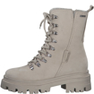 nadčasová, zimní, kotníková obuv z broušené usně. Vrchní materiál je broušená useň (Velur) v kombinaci s nubukovou usní. Vnitřek obuvi je vypodšívkován kožešinou (vlna). Nášlapná stélka je také kožešinová. Podešev je syntetická (surová guma). Výška podešve je cca 2cm. Výška podpatku je cca 4,5cm.