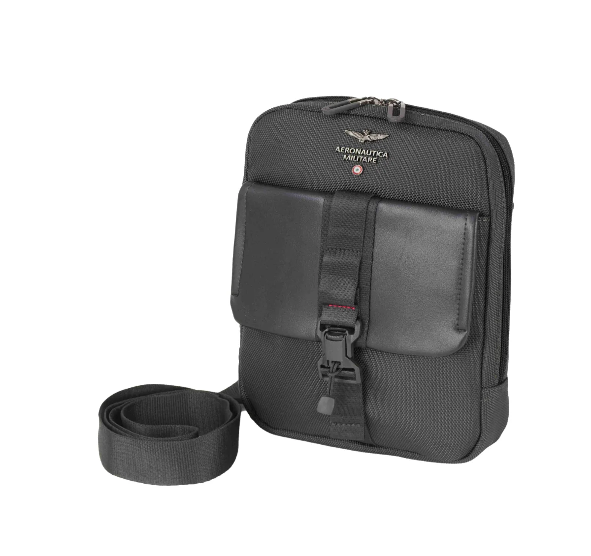 Stylová lehká cross taška přes rameno nebo křížem na osobní věci prestižní značky Aeronautica Militare série Typhoon v černé barvě. Stylová a kompaktní crossbody taška od značky Aeronautica Militare je ideální parťák na každý den, kdy nechceš tahat zbytečnosti, ale zároveň chceš mít všechno důležité po ruce. Model AM-590-01 zaujme na první pohled kombinací odolného textilního materiálu a elegantní hladké klopy na přední straně. Ta je jištěná popruhem s přezkou, takže se nemusíš bát, že by ti něco vypadlo – a navíc to celé vypadá dost „takticky cool“. Uvnitř najdeš dostatek prostoru na mobil, peněženku, klíče i drobnosti, které se vždycky nějak záhadně nahromadí. Hlavní kapsa je na zip, takže máš věci bezpečně schované. Nastavitelný ramenní popruh umožní nosit tašku přesně tak, jak ti to sedí – přes rameno nebo křížem přes tělo.