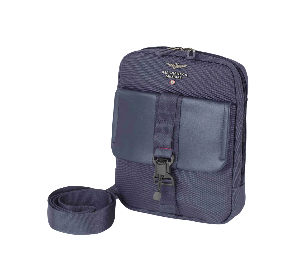 Stylová lehká cross taška přes rameno nebo křížem na osobní věci prestižní značky Aeronautica Militare série Typhoon v modré barvě. Stylová a kompaktní crossbody taška od značky Aeronautica Militare je ideální parťák na každý den, kdy nechceš tahat zbytečnosti, ale zároveň chceš mít všechno důležité po ruce. Model AM-590-01 zaujme na první pohled kombinací odolného textilního materiálu a elegantní hladké klopy na přední straně. Ta je jištěná popruhem s přezkou, takže se nemusíš bát, že by ti něco vypadlo – a navíc to celé vypadá dost „takticky cool“. Uvnitř najdeš dostatek prostoru na mobil, peněženku, klíče i drobnosti, které se vždycky nějak záhadně nahromadí. Hlavní kapsa je na zip, takže máš věci bezpečně schované. Nastavitelný ramenní popruh umožní nosit tašku přesně tak, jak ti to sedí – přes rameno nebo křížem přes tělo.