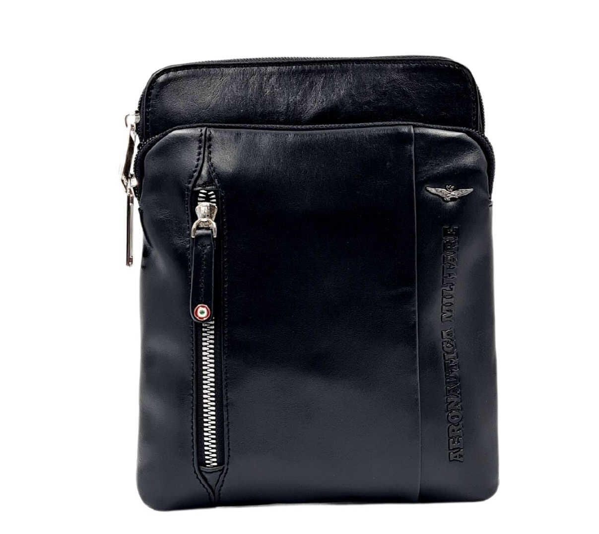 Stylová kožená cross taška přes rameno nebo křížem na osobní věci prestižní značky Aeronautica Militare série Thunder v černé barvě. Tašku si oblíbíte díky komfortním rozměrům a uschováte do ní všechny své nejdůležitější věci, jako je peněženka, mobilní telefon, doklady i klíče.