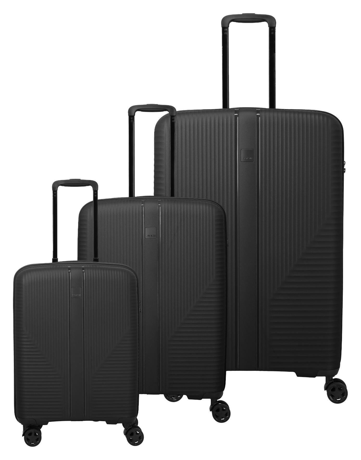 Sada polypropylenových kufrů na čtyřech kolečkách. Střední kufr M disponuje expandérem a malý kufr S má palubní rozměry 55 x 39 x 20 cm.