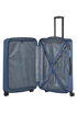 Čtyřkolečkový skořepinový kufr z robustního ABS plastu v trendy modré barvě vybavený integrovaným TSA zámkem.