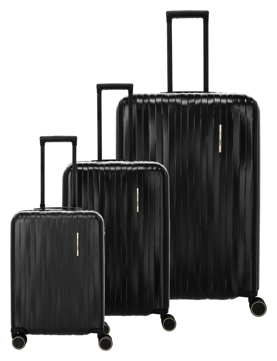 Sada 3 luxusních čtyřkolečkových dámských skořepinových kufrů z polykarbonátu s integrovaným TSA zámkem, vakem na boty a pouzdrem na šperky.