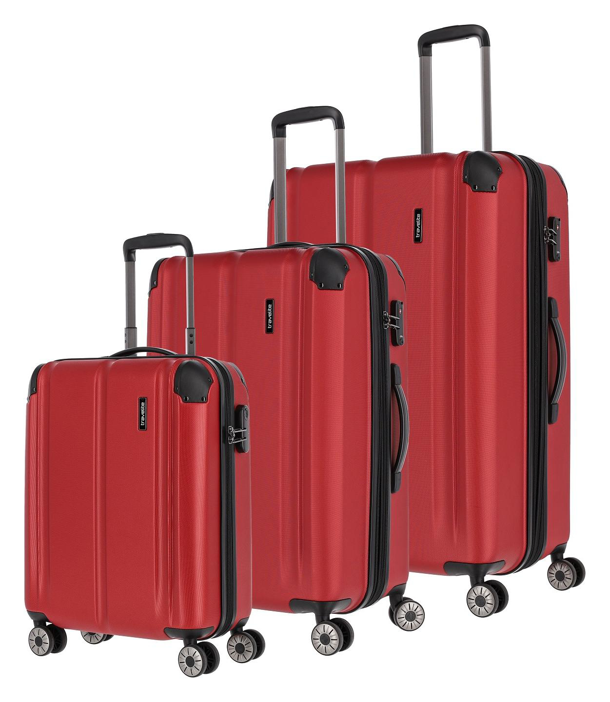 Sada moderních skořepinových kufrů z robustního ABS plastu na čtyřech kolečkách.