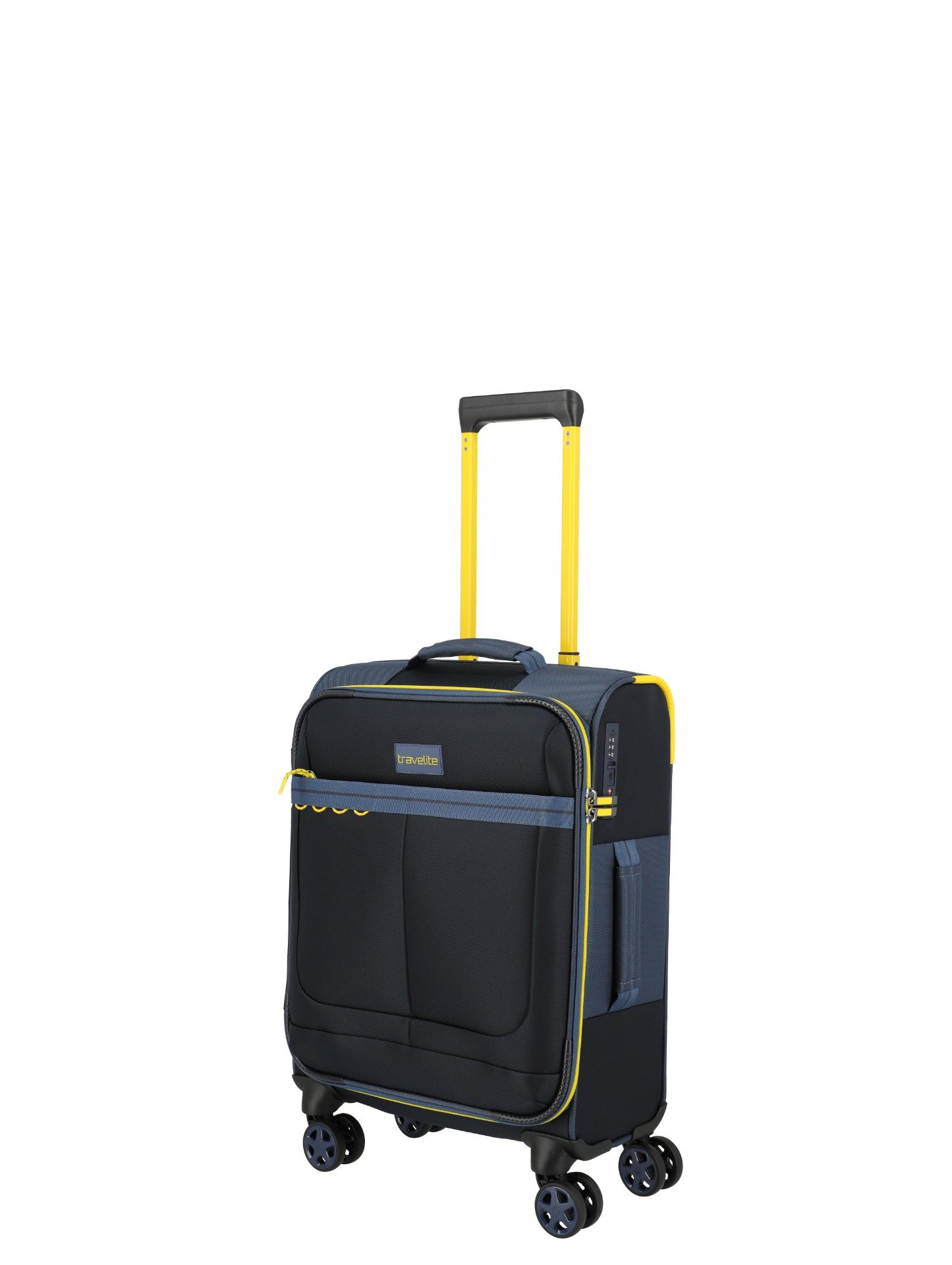 Kompaktní textilní kufr s rozměry příručního zavazadla a moderním designem.
