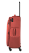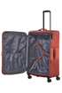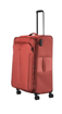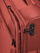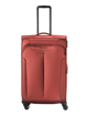 Textilní cestovní kufr na čtyřech kolečkách vybavený integrovaným TSA zámkem, expandérem a přední kapsou na zip.