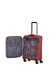 Palubní textilní cestovní kufr na čtyřech kolečkách vybavený integrovaným kombinačním zámkem a přední kapsou na zip.